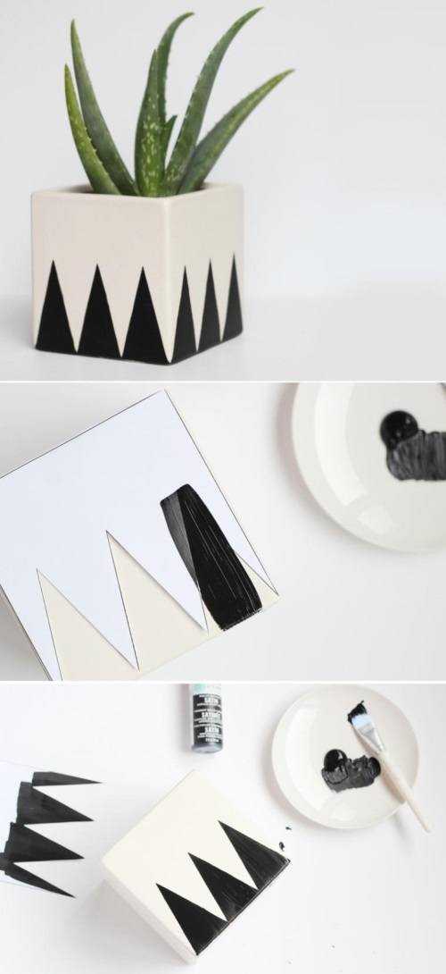 15. Нанести на цветочный горшок геометрический узор — это так просто, а получается стильная вещица для украшения интерьера.