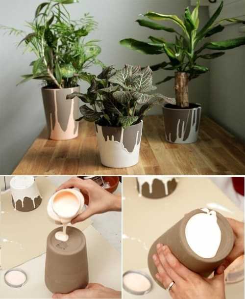 17. Растекающаяся краска — популярный дизайнерский прием декорирования, применимый в том числе и для декорирования цветочных горшков.