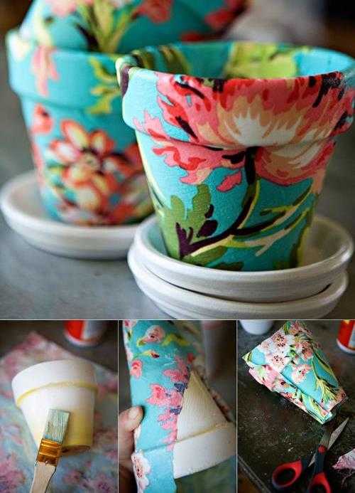 20. Чтобы украсить цветочный горшок, можно использовать красивую ткань.
