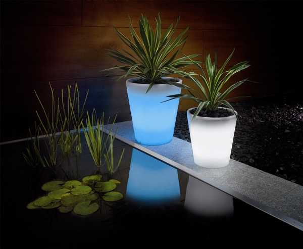 Дизайнеры додумались создать цветочные горшки, объединенные со светильниками. Стильное и практичное решение, надо сказать. Стоят подобные удовольствия не дешево, но идея просто замечательное. Часто такие горшки оснащены цветными светодиодами, которые могут менять свой цвет.