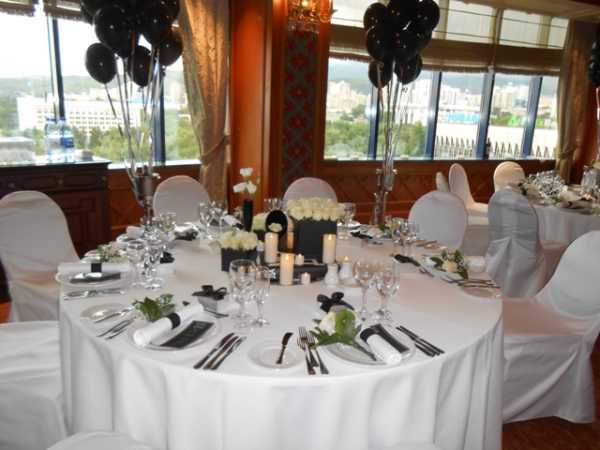 Почтенный возраст уже не терпит отговорок и не признает объяснений. Жизнь делиться на две полосы – черную и белую. Розовые, фиолетовые, и других цветов очки оставим молодежи! А наше поколение жило в эпоху черно-белого телевиденья, костюмов, фотографий. Украсьте торжественный зал в соответствующих тонах! Впрочем, черно-белый тон мероприятия еще совсем не означает, что оно должно стать скучным и пресным. Даже в черно-белой гамме есть место для веселья, неповторимых сладостей, и ярких фотографий с блеском в глазах!