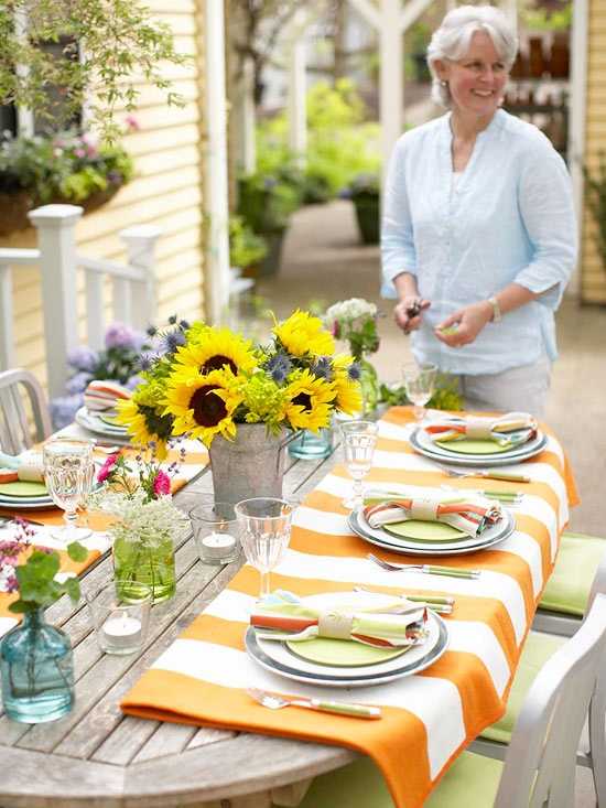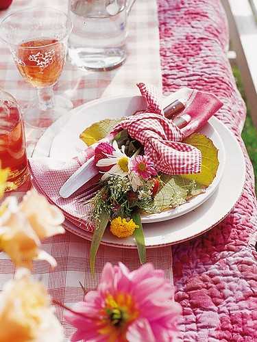 оформлению комнаты. На стол можно поставить живые цветы, а на занавески посадить искусственных бабочек. Очень важно, чтобы составляющие интерьера «перекликались» между собой, как по цвету, так и по «тематике». Можно расставить возле каждого столового прибора букетики живых цветов.