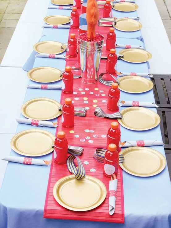 Если вы празднуете день Рождения ребенка, для стола лучше выбрать скатерть с нескучным рисунком, это может быть сюжет из мультфильма или сказки, изображения животных или персонажей игр. Что касается сервировки, то лучше обойтись одноразовыми тарелками и стаканами, чтобы избежать травм, особенно если дети дошкольники. Тем более, что в магазинах продается специальная посуда для праздников, разных расцветок и с разными рисунками. Да и мыть ее не придется, можно просто выбросить.