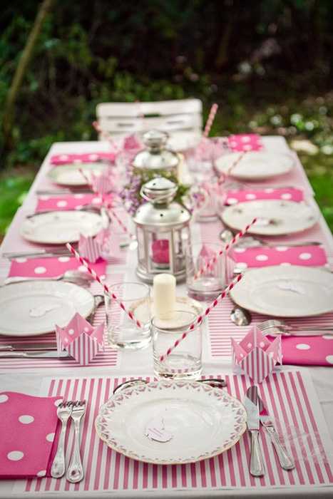 Например, можно подобрать белоснежную скатерть, посуду с бабочками, салфетки в тон