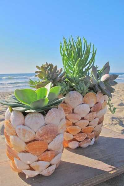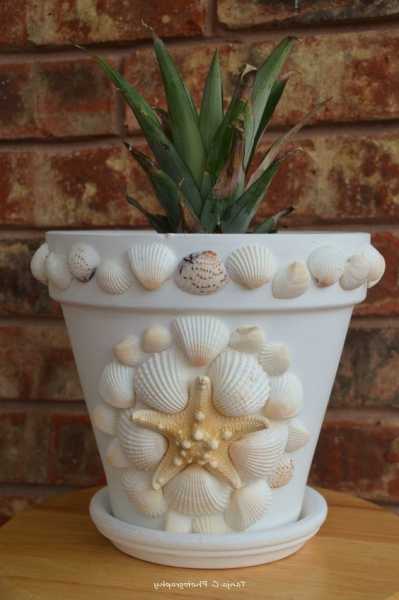 Украшение горшков для домашних цветков ракушкамиУкрашаем морскими дарами двор, сад или дачу