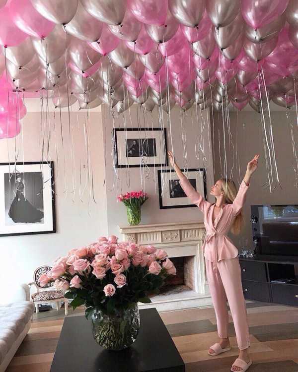 Всем известно, что розовый цвет означает романтичность и любовь, а это как раз то, что любят девушки любого возраста, поэтому, если вы хотите сделать сюрприз в виде украшения комнаты воздушными шарами для любимой девушки или дочки — розовый цвет станет идеальным вариантом.