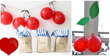 Ещё одна вкусняшка из шаров. В отличии от предыдущего варианта, здесь шарики можно не надувать гелием, а надуть их самостоятельно. Главное требование — шары должны быть красного или бордового цвета, чтобы в готовой композиции угадывались ягоды вишни.