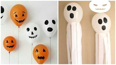 Для них лучше всего использовать белые непрозрачные шарики, но для Хеллоуина будут уместны и оранжевые, имитирующие тыкву. Сделать такое милое привидение очень просто — достаточно самого шарика и черного маркера или фломастера. Нарисовать мордашку призрака под силу даже малышу, а сколько удовольствия ребенок получит от самого процесса создания такого праздничного декора.