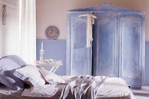 Старомодный шкаф выкрашивается не одним слоем акриловой краски. Краска должна иметь такой цвет, отклик которого есть в рисунке обоев. Многие мастера таким образом реставрируют шкафы с двумя створками, очень старые, возможно, даже не домашние. Нередко мастер-классы показывают, как преобразить шкафчик, к примеру, списанный из врачебного кабинета. Они невысокие, дверцы их имеют рельефную структуру.