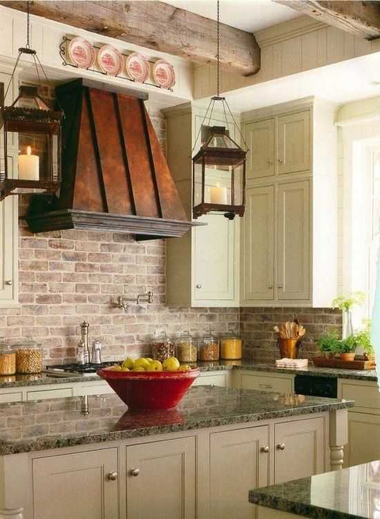 Дизайн, сочетающий в себе черты современного стиля и грубоватой деревенской эстетики, очень востребован среди домовладельцев. Перед нами — воплощение именно этой идеи. Нижний край колпака декорирован фрагментами мелиорированных потолочных балок.