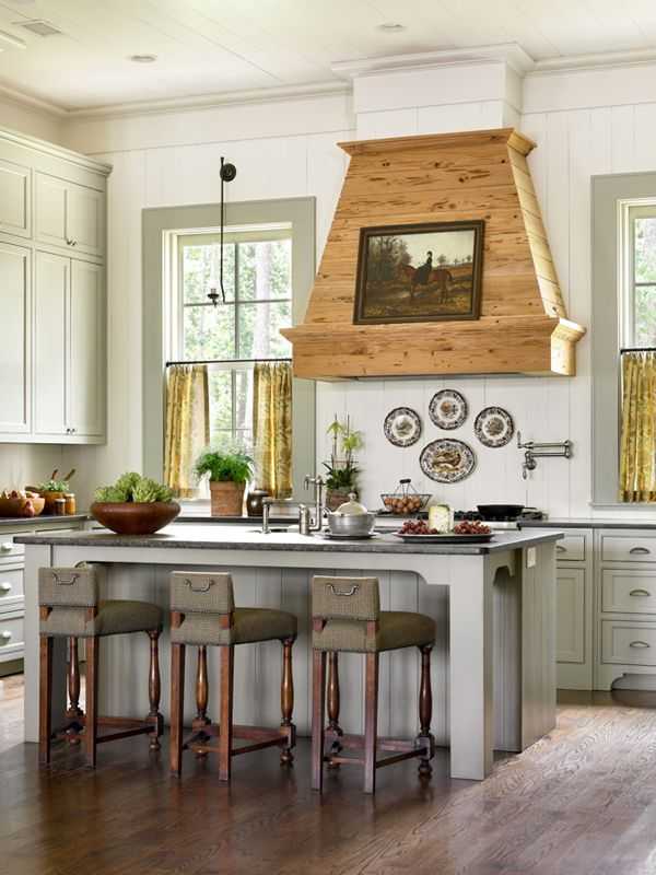 И снова перед нами колпак из восстановленных досок с заметно выветренной поверхностью. Надо сказать, он отлично смотрится в этой очаровательной винтажной кухне.