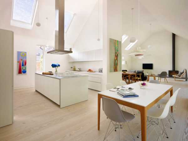 Вытяжка в обтекаемом дизайне, подобная той, что мы видим на фото, может буквально раствориться на общем фоне, а в случае с «островными» вариантами — это именно то, что нужно.