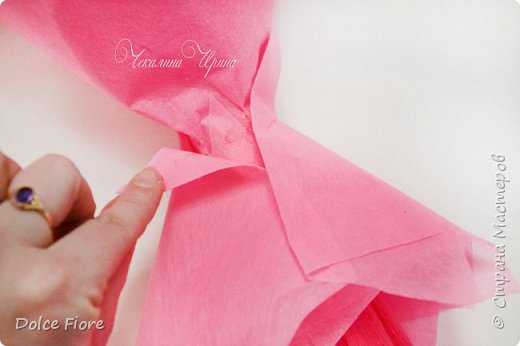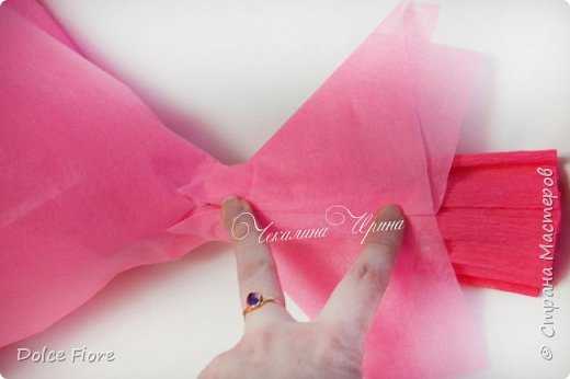 Далее подворачиваем на одно деление гофры и растягиваем по краю (как в стандартном букете).