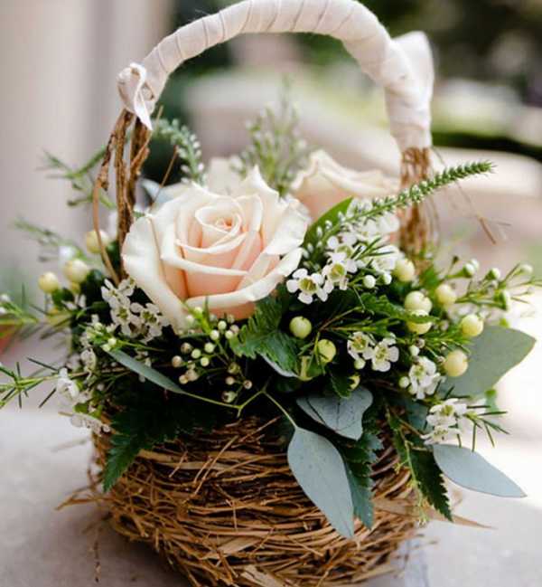 - Ты только посмотри, какой чудесный вариант цветочной композиции в корзине! Букеты в корзинке можно создавать из самых разных типов цветов, красиво обыгрывая их.