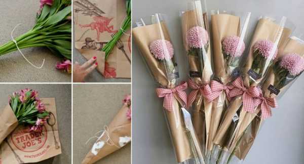 Используя такие материалы, можно самостоятельно упаковать цветы. Весь процесс состоит из следующих этапов: