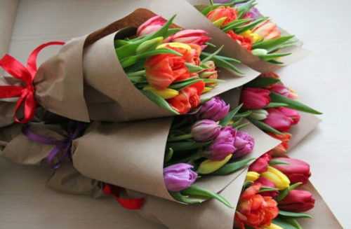 Красиво упакованный букет непременно порадует маму или бабушку на 8 Марта или в любой другой весенний день.
