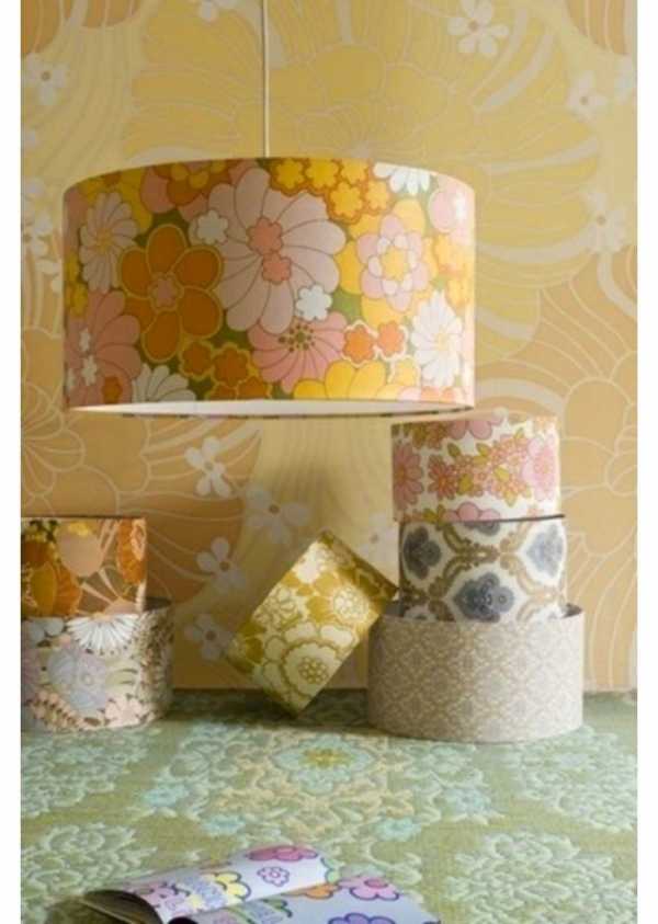 Обои в качестве абажуров для светильников – стильное и необычное решение. Достаточно подобрать небольшой кусок обоев под текстиль, декоративные подушки или постеры на стене, как интерьер заиграет другими красками и преобразится.