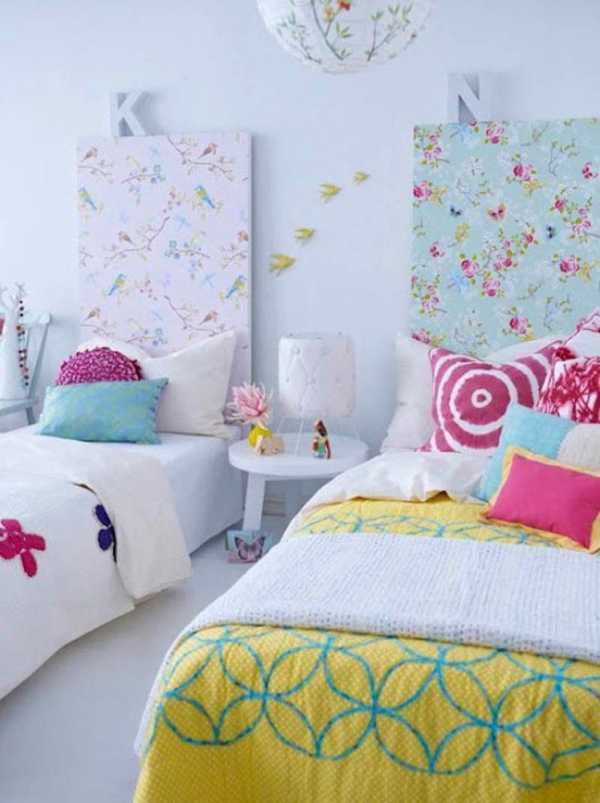 Изголовье кровати — еще один интересный объект для декорирования остатками обоев
