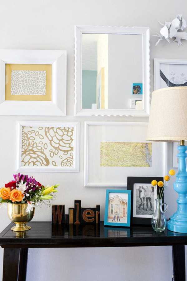 Когда нет необходимости полностью обновлять внешний вид стены, а хочется немного его приукрасить, можно использовать несколько фоторамок.