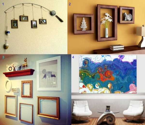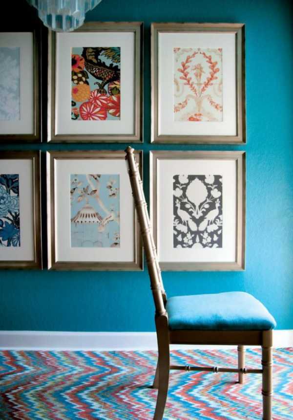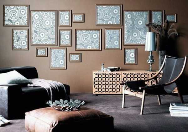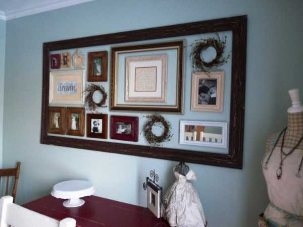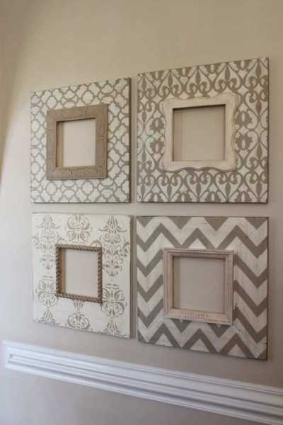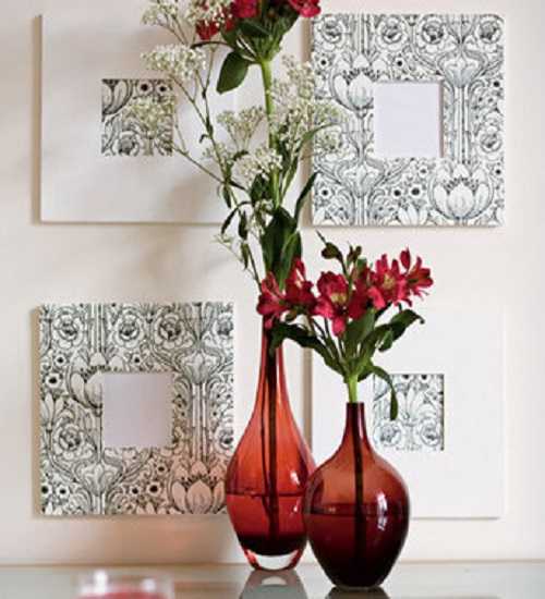 Рамки лучше взять разного размера. В них наклеивают разные куски обоев. Такой декор придаст интерьеру совершенно новый вид.