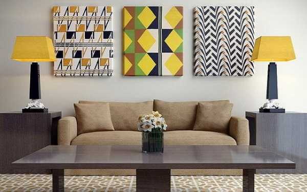 Стильным, ярким акцентом может стать композиция из рамочек, в которых в качестве картин будут выступать яркие принты.