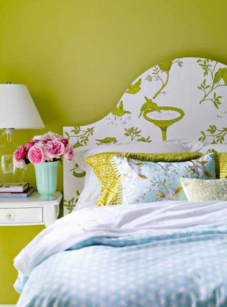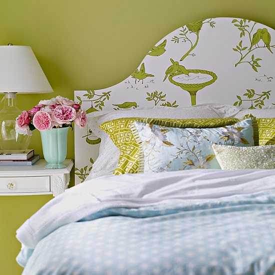 Вы можете обклеить уже имеющееся изголовье, а можно создать из листа фанеры и обоев замысловатого рисунка. Придайте изголовью интересную форму, и ваше спальное место станет уникальным акцентом спальни.