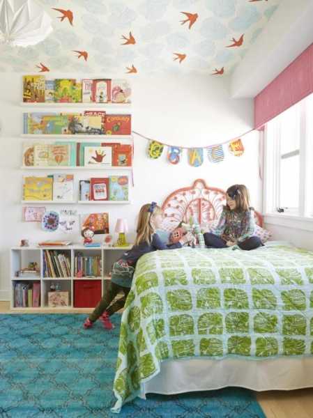 Когда остаются разные куски обоев их можно использовать для создания отдельной стены, например для выделения ее в детской комнате.