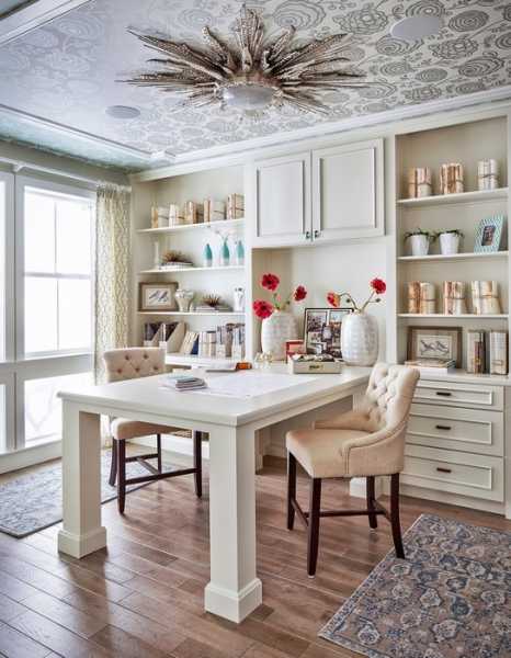 Если у вас остался один или несколько неиспользованных рулонов, применить их можно для украшения потолка. Так же, вы сможете обновить интерьер одной из комнат в квартире, а также сделать её гораздо привлекательнее и интереснее.