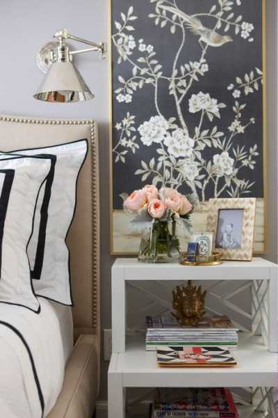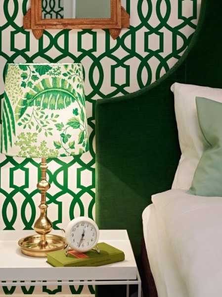 ИЗГОЛОВЬЕ КРОВАТИ. Кровать с высоким изголовьем – это неотъемлемый элемент спальни в классическом и английском стиле. Если у вашей кровати нет спинки, можно просто поклеить часть стены обоями другого цвета и фактуры, имитируя тем самым изголовье и создавая по-особенному уютную атмосферу. Обои с рисунком на фоне однотонной стены – простой и недорогой акцент, который смотрится весьма стильно, особенно если дополнить его похожим узором на постельном белье или покрывале.