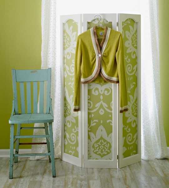 Одним цветом или кусочками разных можно преобразить старую ширму.