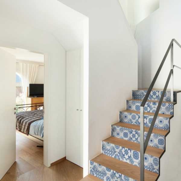 Иногда после ремонта остаются узкие и продолговатые обрезки, которые на первый взгляд некуда применить. Как раз они отлично подходят на роль украшения лестничных ступеней. Особенно актуально это смотрится на даче.