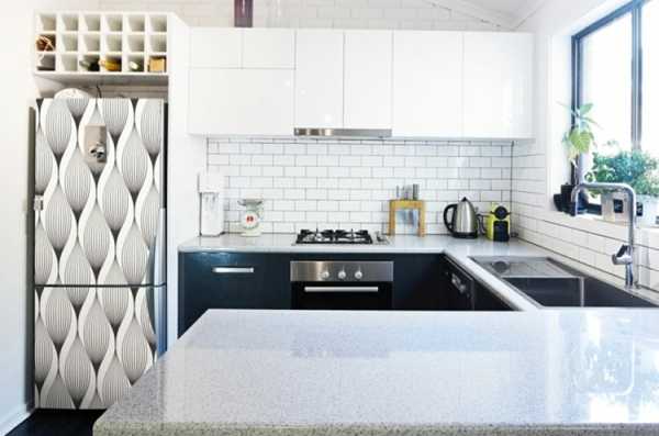 Ещё одна забавная идея – декорировать обоями холодильник. Всё же лучше выглядит, чем многочисленные наклейки или магниты. Но на такой эксперимент согласятся далеко не все, поэтому опробовать его можно на той же даче.