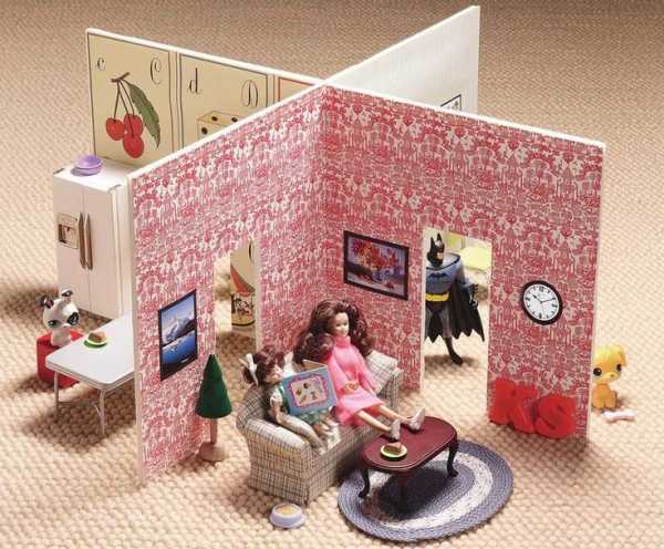 Маленькие остатки обоев прекрасно подойдут для «ремонта» кукольного домика.