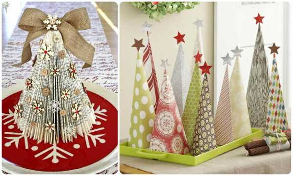 И напоследок вот такие варинаты новогодних елочек из обрезков обоев. Яркий, креативный, праздничный элемент декора помещения.