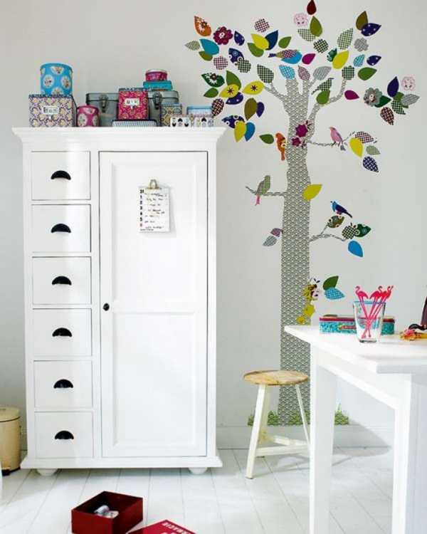 ФИГУРЫ ИЗ ОБОЕВ. Можно отойти от четких геометрических форм и украсить однотонную стену фигурами из обоев. Особенно актуальна эта идея для детской. В ней могут появиться узорчатые воздушные шары, машинки, самолеты, буквы, цифры; из ярких остатков обоев — звери и растения всех разновидностей – в детской все будет смотреться органично. Кстати, подобная аппликация может стать отличным выходом из ситуации с неожиданно разрисованными стенами. Фигуры на стенах позволят ребенку прикоснуться к сказке, а изображения сказочных героев будут поднимать настроение.