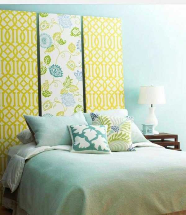 В небольших спальнях всё чаще можно встретить кровати без спинок, так как их собратья с роскошными изголовьями зачастую являются громоздкими и предназначены для больших комнат. Стремясь выделить зону комфорта, многие всё же делают изголовье кровати своими руками. В ход идут деревянные доски, ткань, роспись стен и фоторамки. А мы предлагаем использовать остатки обоев, которые также отлично подходят на роль изголовья. В этом случае практичнее использовать виниловые и моющиеся обои.