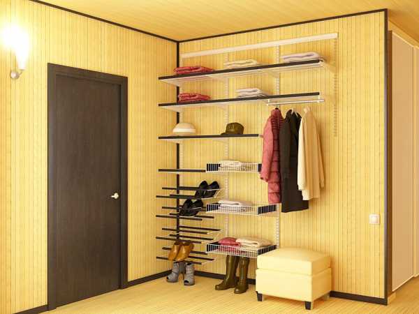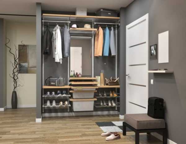 Важно! При устройстве каркасной гардеробной в прихожей стоит учитывать способность всех элементов выдержать вес тяжелых вещей.