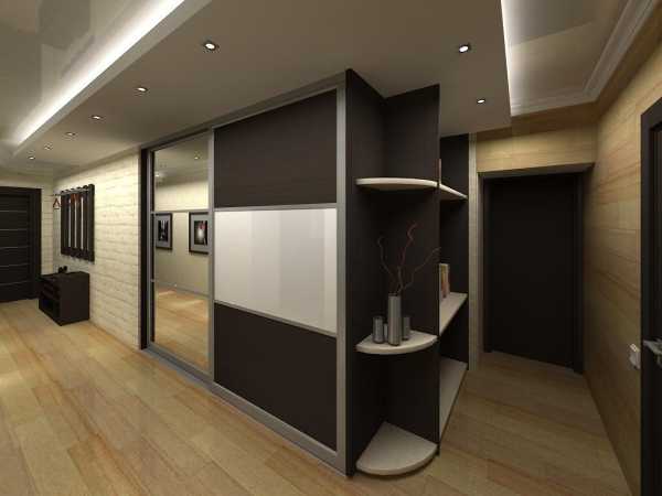 Если прихожая имеет форму вытянутого прямоугольника, то наболее уместным будет вариант гардероба, встроенного вдоль одной из стен.
