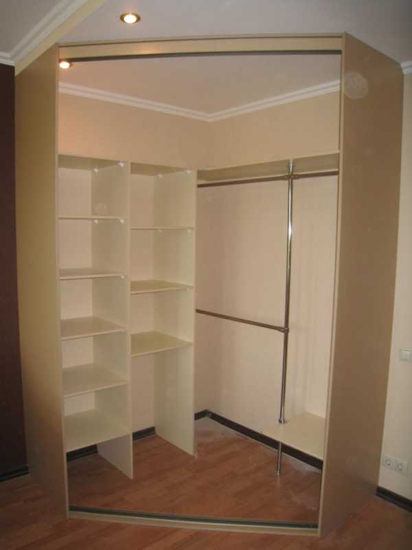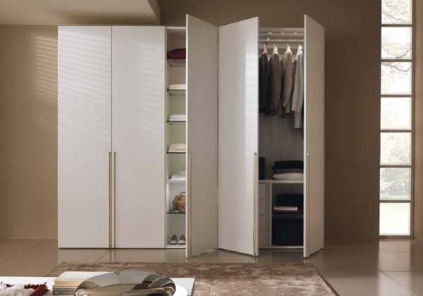 Угловой вариант размещение систем хранения является оптимальным для владельцев небольших квартир, позволяет эффективно использовать пространство в комнатах с ограниченной площадью – спальнях, прихожих, детских, мансардах.