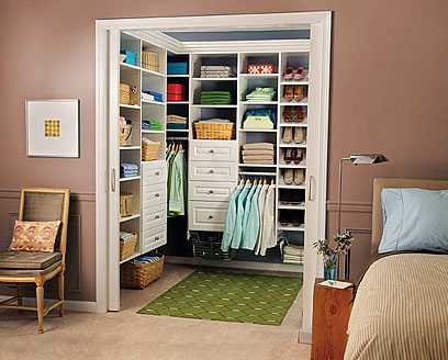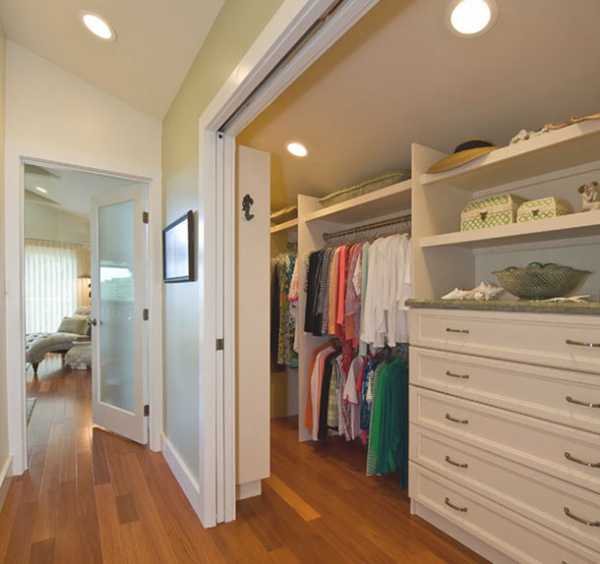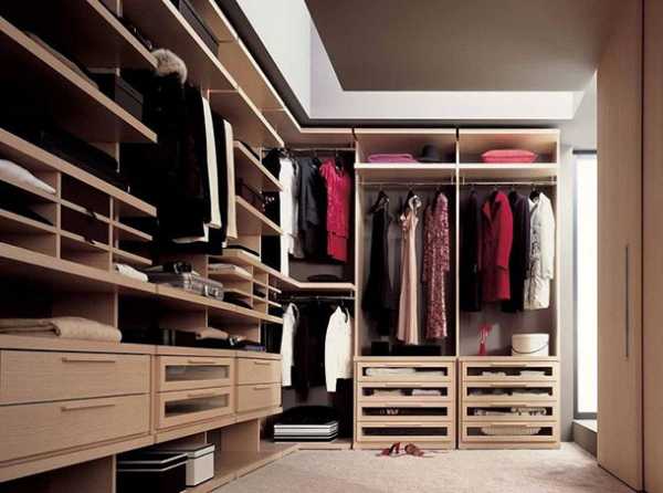 Когда нет отдельного свободного помещения, то комнату для хранения вещей можно обустроить в спальне.