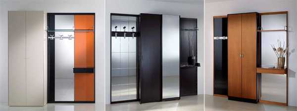 Зеркало в полный рост, маленькая кушетка или пуфик помогут создать максимально комфортные условия во время переодевания. Предлагается множество вариантов обустройства гардеробной в прихожей, дизайн и фото представлены ниже.