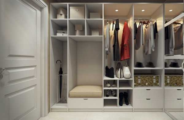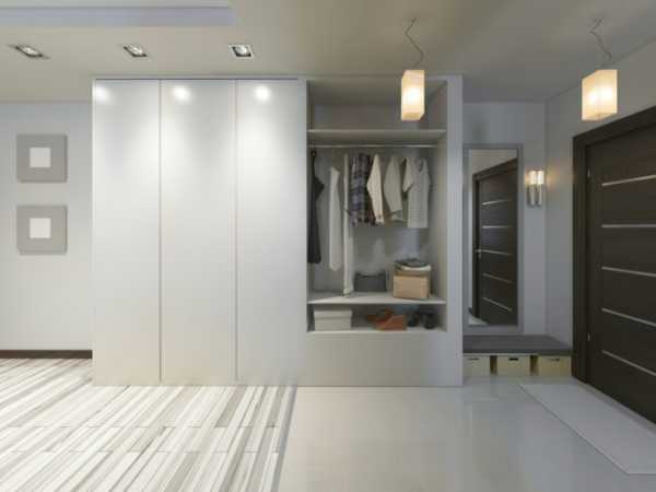 Наиболее удачным вариантом будет размещение гардеробной комнаты в прихожей, если позволяют габариты помещения.