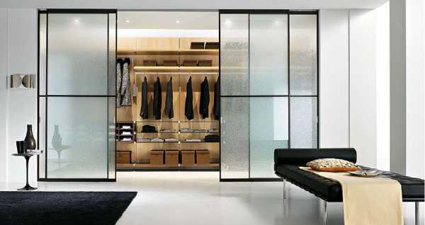 - двери купе — это наиболее распространенный вид ограждения гардеробной от комнатного пространства. Такой тип дверей призван сэкономить пространство в коридоре. Также на раздвижные двери можно установить большое зеркало;