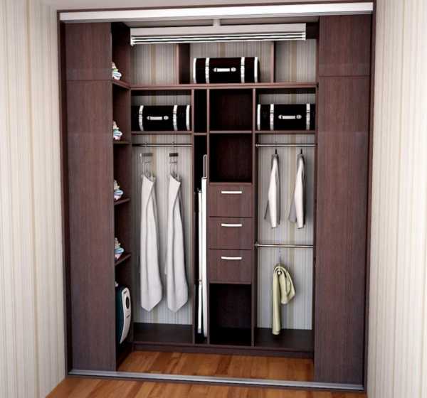 Что касается внутреннего наполнения, то здесь все зависит только от пожеланий владельца. Можно выполнить его в современном дизайне с использованием полок и штанг из металла, а можно в классическом – с деревянными полками, ящиками и вешалками.