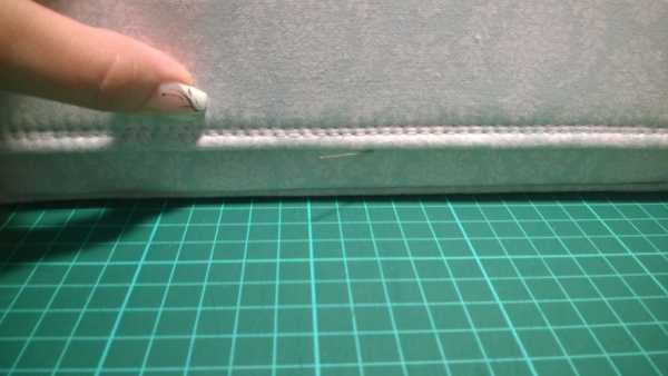 Теперь, если ткань выходит за края перегородки, аккуратно срежем излишки: