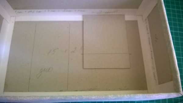 Будет просто прекрасно, если на дне коробки вы заранее отметите линии, куда надо будет приклеивать стенки: