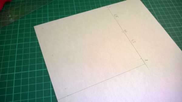 Отметили, затем под прямым углом (угольник — лучший друг картонажника) провели линии вверх, оставив ту часть, где перегородка уже не примыкает (в моем случае это 5 мм) и сделали вырез: