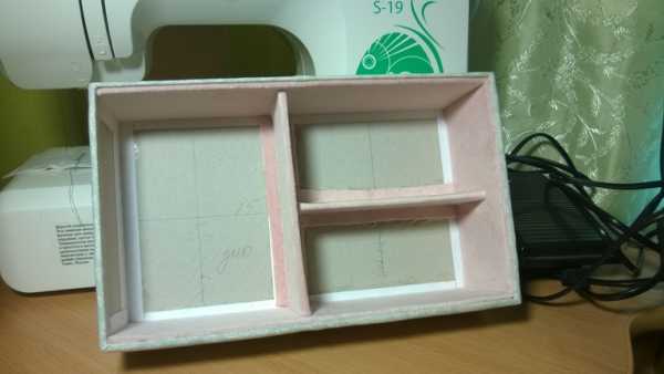 НО!!!!! если вы будете делать ленту, то возле той стенки, где она будет крепиться — ничего не делай, я обычно там делаю отделение для колец. Эту часть мы сделаем в самом конце. если ленты не будет — можете заполнить весь короб перегородками и донышками.
