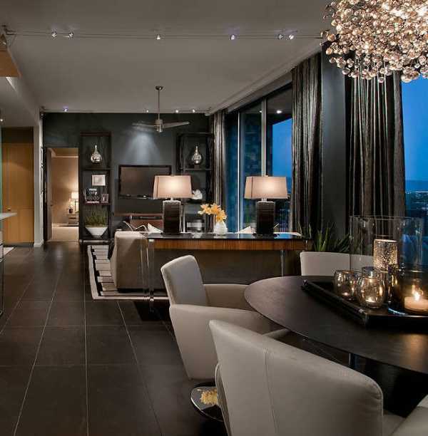 Помещения оформленные в этих тонах, всегда выигрышно смотрятся, особенно комнаты небольших размеров. Чтобы достичь контраста, используют противоположные, светлые и яркие тона. Современный стиль минимализм практикует именно такое сочетание.