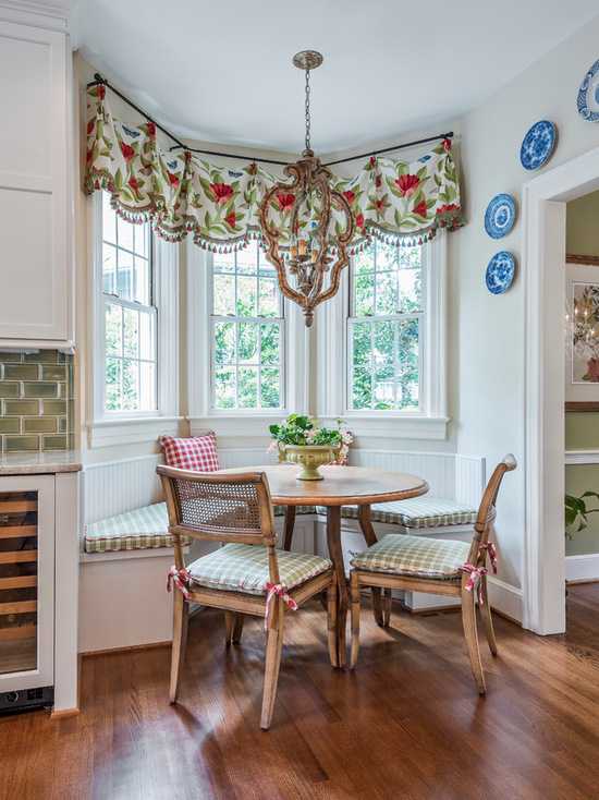 Для небольших помещений уместнее будут короткие шторы, шторы-кафе, цветастые занавески.